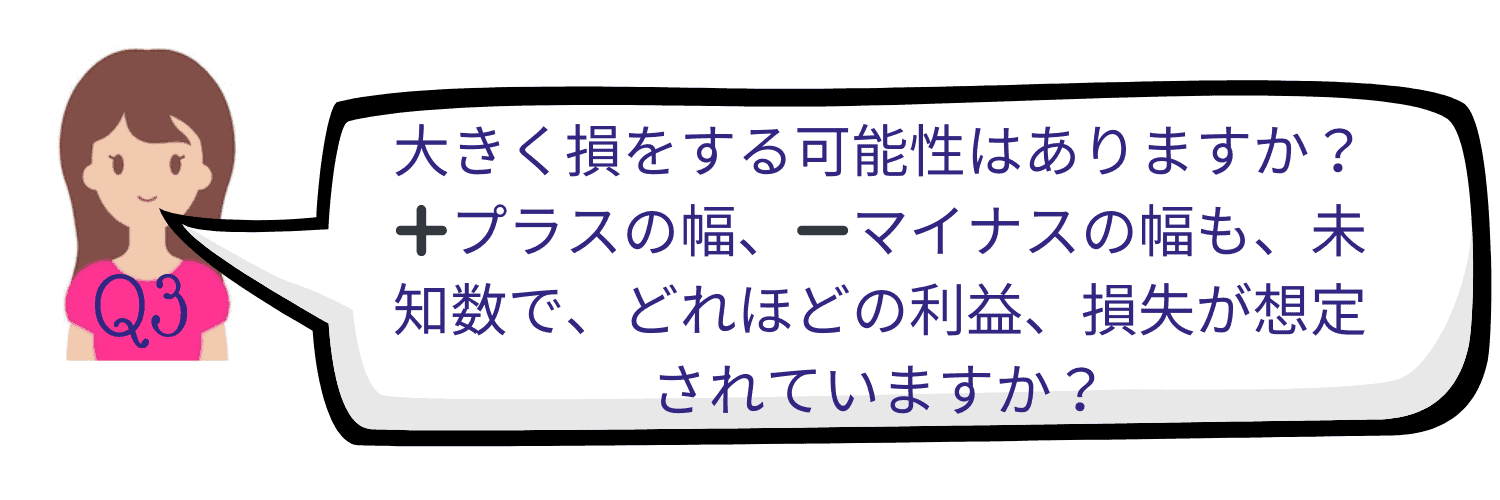 投資の対象によって、プラスの幅、マイナスの幅の想定が変わります。一般には安全だと言われる投資対象は利益率も低く、非常に利益率が高いと言う可能性のある投資は、失うリスクも大きいです。利益率が低いが安全だと想定される運用は、年金で3−4%の利益。その次に利益率が高くなり、もう少しリスクがあるのは6%利益率を想定されている上場株です。ここは非課税額を最大限(360万円)まで使って、長期的に備える投資信託を選ぶことが必要です。その次に利益率が高いのは、未上場株です。2倍から10倍なることもあります。未上場株は、人なら、産まれて(スタートアップ)から社会に出る(上場または売却)するまでの期間の幅があり、スタートアップは投資額は低いですが、98%失敗。当たったら物凄い利益率になります。上場前はかなり投資額も高くなっていますが、上場が予定されている段階なので失敗率が低くなります。人間なら、スタートアップは産まれたての赤ちゃんで、プレIPOは、社会に出る前の優秀な大学生に投資をすると言うイメージです。例えば3年前に、私は上場前のエアビー(Airbnb)サンフランシスコ在に投資をし、上場して『4X』(4倍と言う意味)の額で返ってきました。